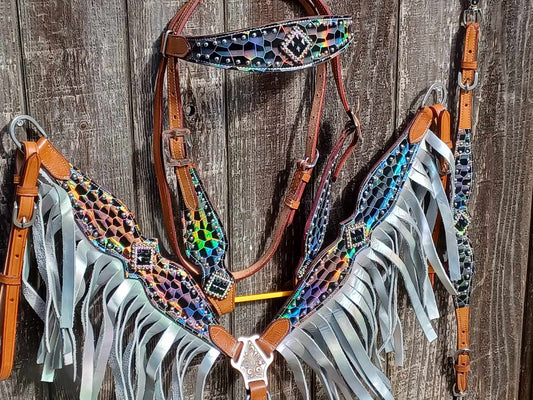 Octavia Black AB Bling Headstall Breast Collar Set Fringe Wither Strap