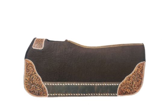 32" x 31" x 1" Brown Felt Saddle Pad with Medium Floral Stamp Leather Accents