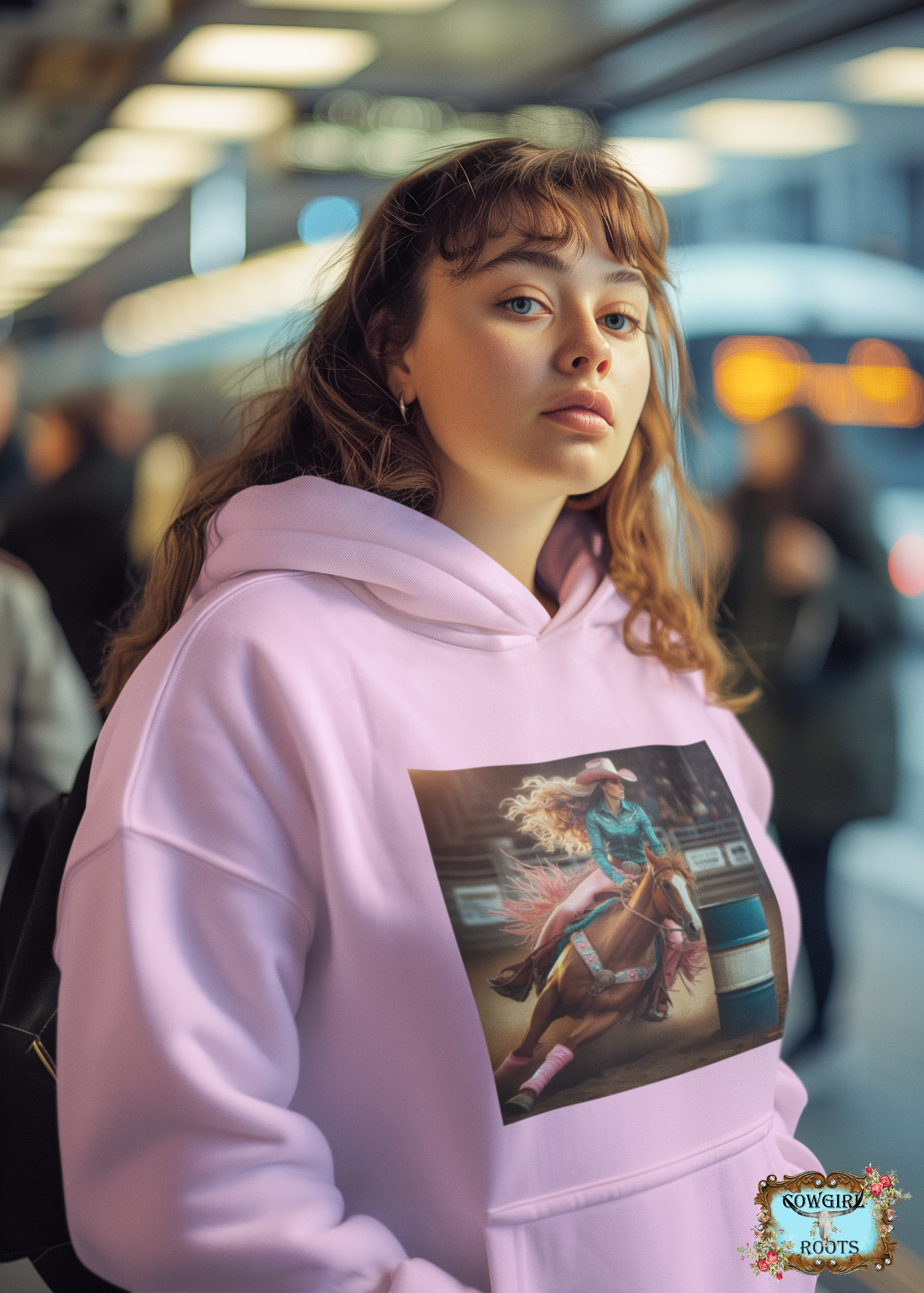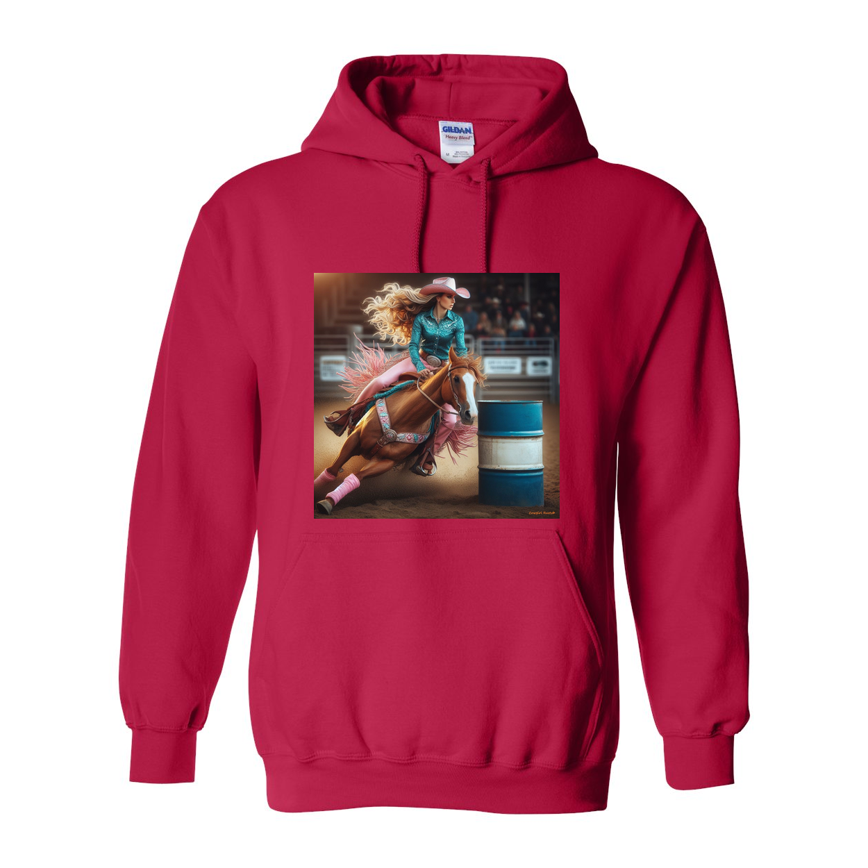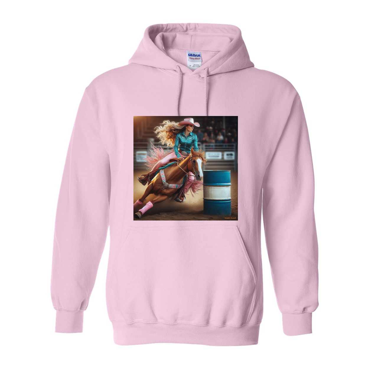 Beautiful Barrel Racer sits in a Full Turn N Burn on One Our Amazingly Comfortable Hoodies