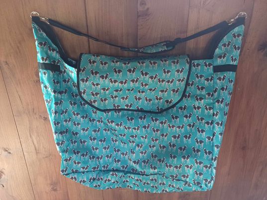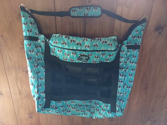 Hay Bags are perfect for on the Go or Barn Feeding! Adjustable Hanging Straps help you to hang your bag securely during Horses feedings! Movable Cross Straps across the front, allow for your Horse to Graze their Hay Freely and Easily! Top Bars for Sturdiness are Light Weight with and a Top Flap for Extra Closure!