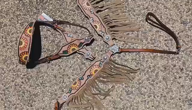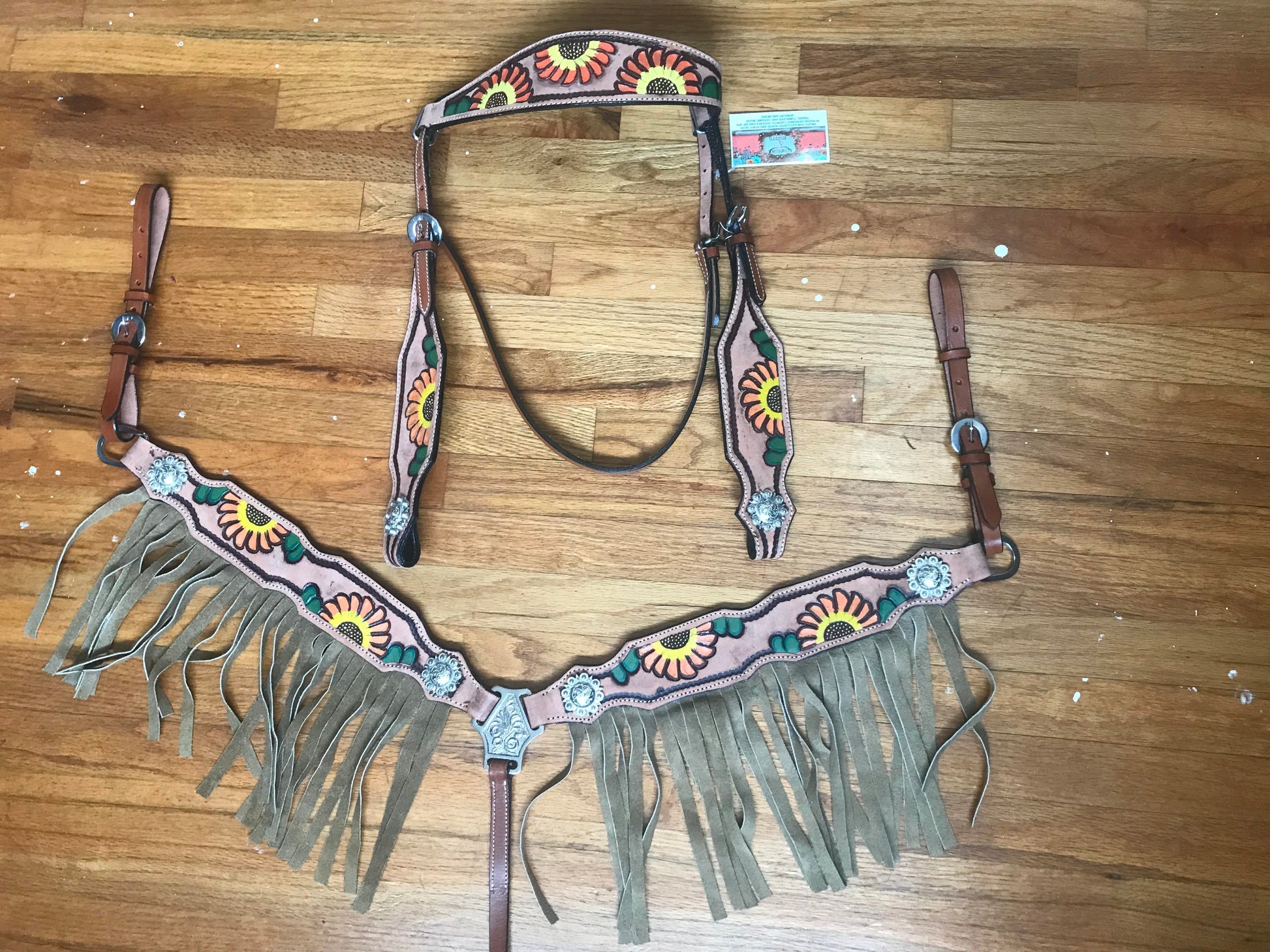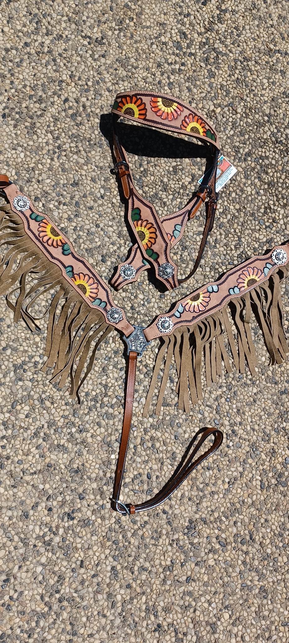 Orange Sunflower Fringe Headstall Breast Collar Set