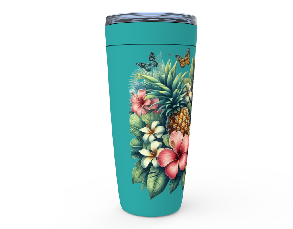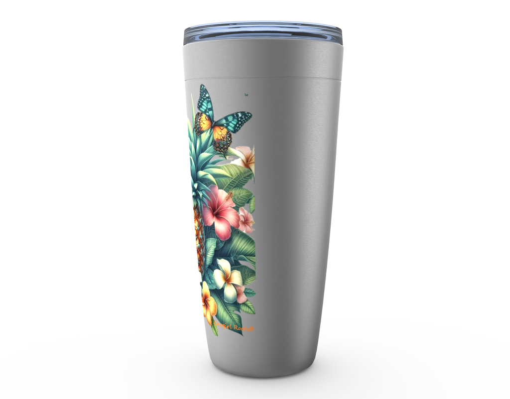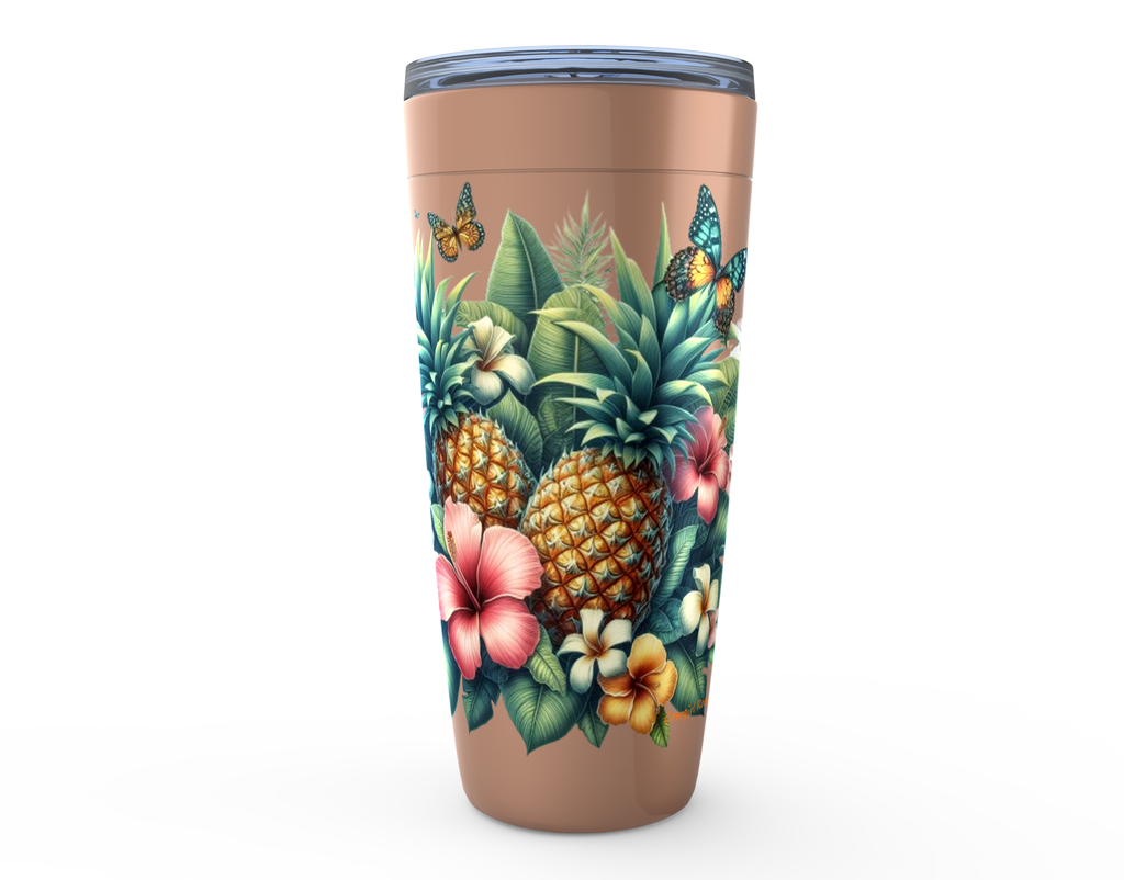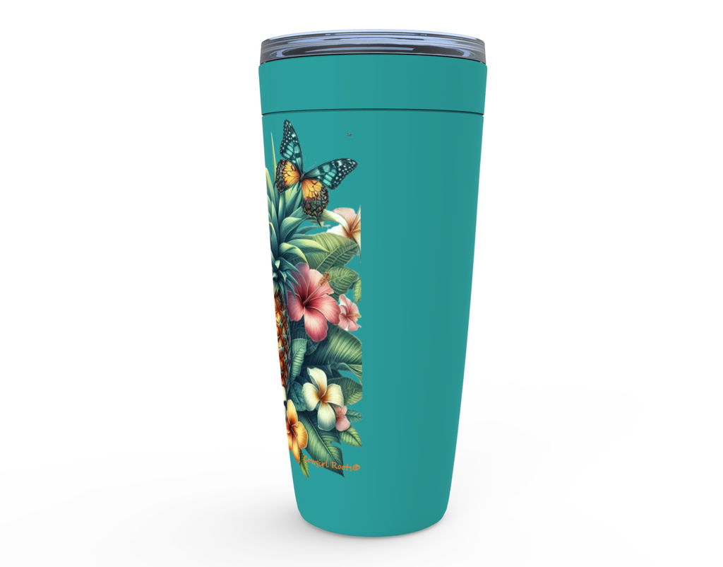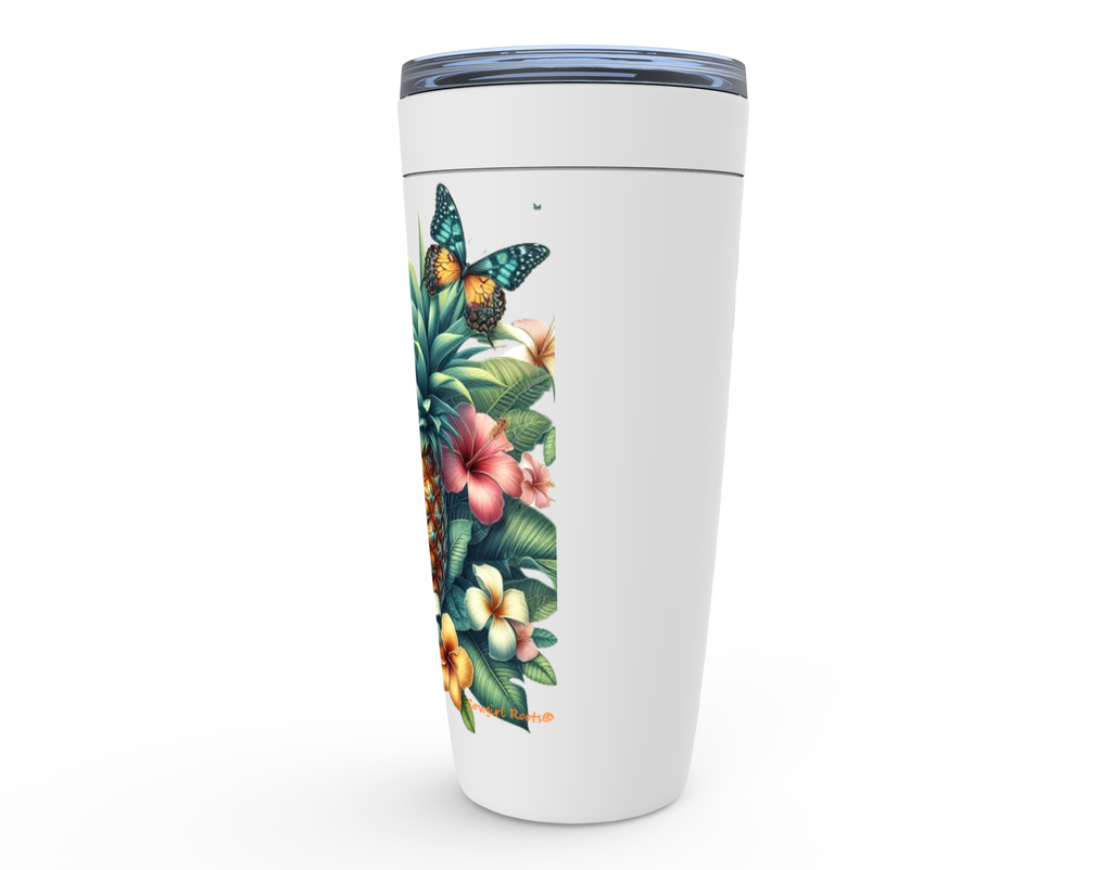 Two Beautiful Sweet Pineapples Amongst Tropical Flowers and Butterflies on Our Stay Hot or Cold Travel Tumbler Mugs