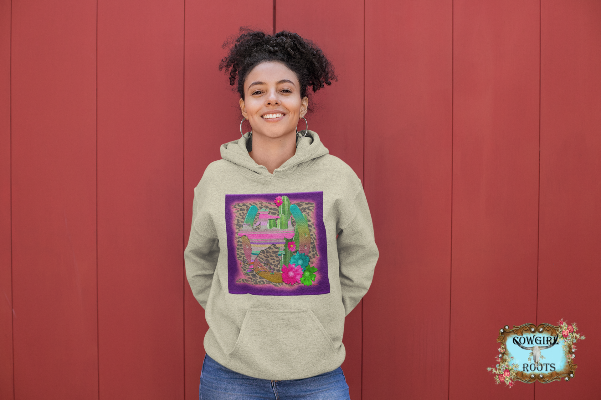 "DESERT BRONC DREAMS" Cowgirl Roots Designs brings You a Classic Western with a Today's Originally Designed Brilliant, Vivid, Brightly Colored, Handcrafted, Representation of Rodeo! The Suspense, the Work, the Fun, the Win! It's ALL about Rodeo! Match that up with a lil' Desert Love and some of Life's favorite patterns, Serape and Leopard! You've got yourself SOME Amazing "DESERT BRONC DREAMS!" Slip into one of our Exquisite Hoodies and wear ALL your Rodeo Dream's Proud wherever you go.
