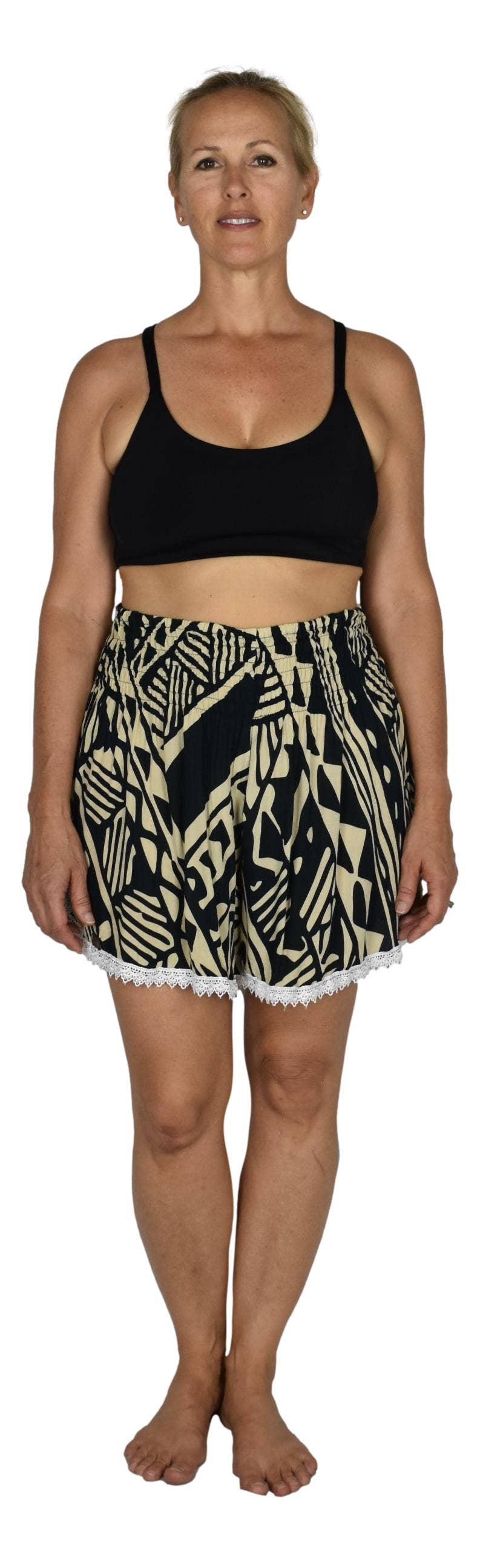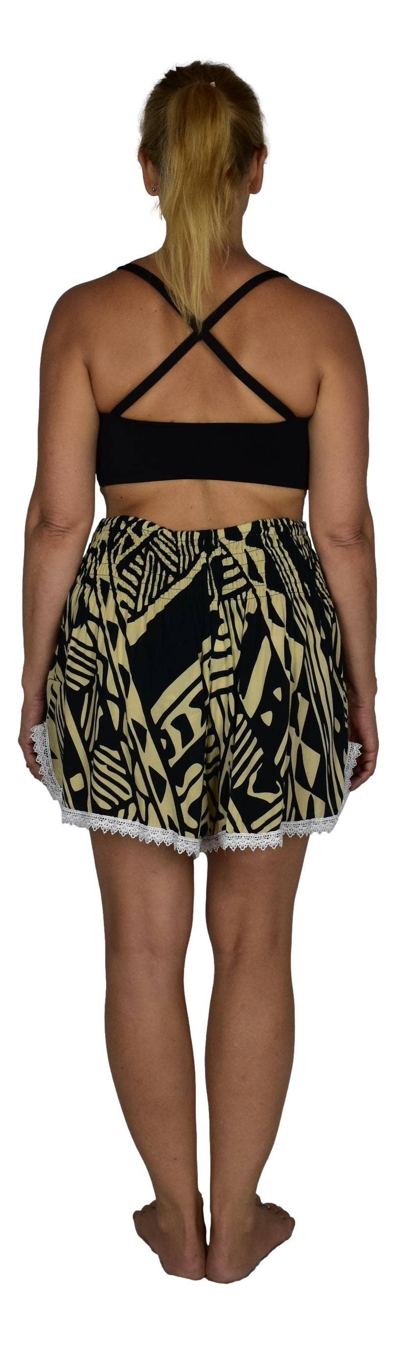 Hawaiian Tribal Lace Trim Shorts in Black & Lark