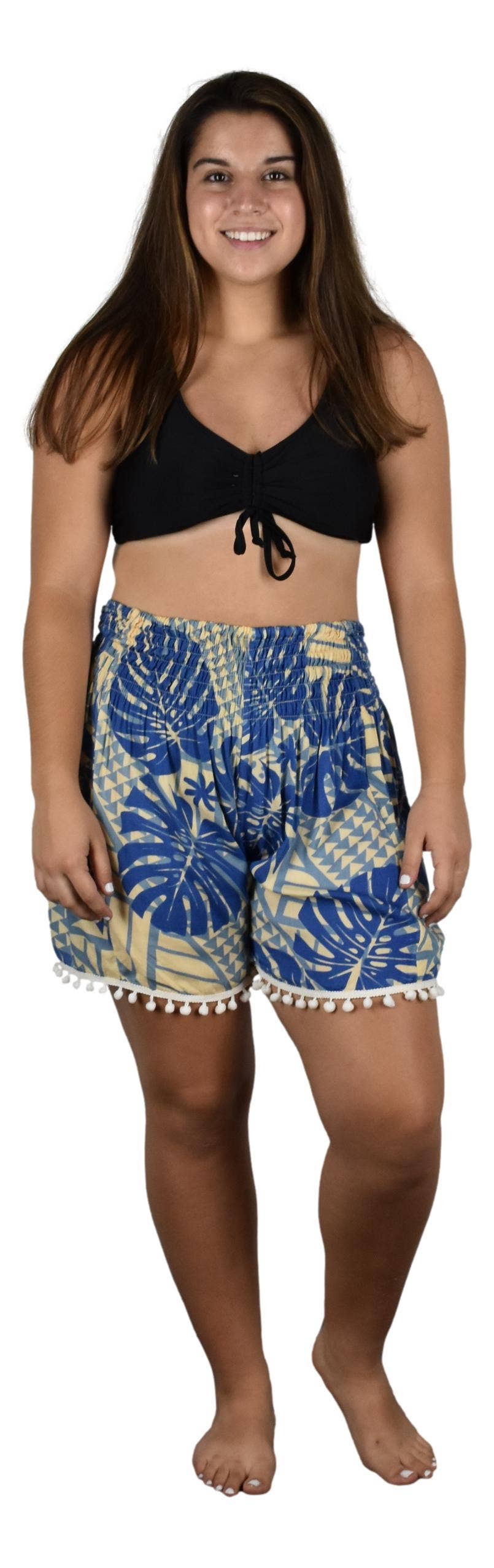 Lauhala / Monstera Island Style Shorts with Lace Trim