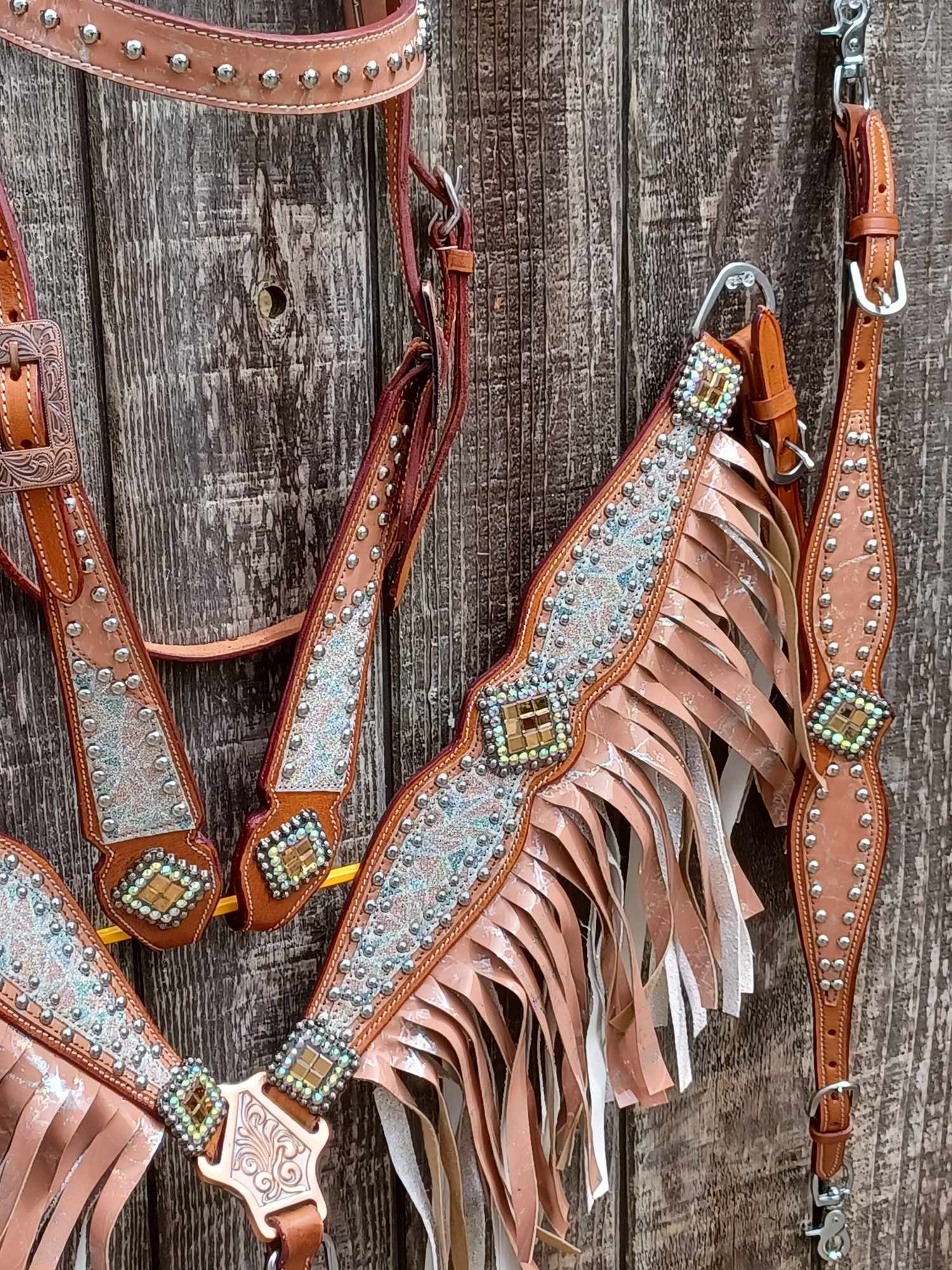 Matilda Double Fringe Glitter Headstall Breast Collar Set Wither Strap