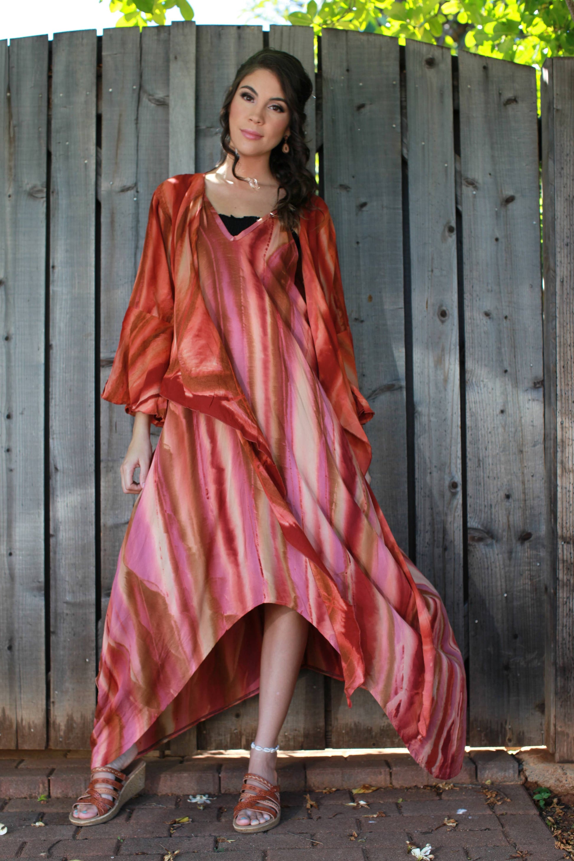 Our top-selling jumpsuit has evolved into a beautiful dress, now part of our vibrant Rainbow Collection! This dress boasts a perfect V-neckline, high-low hem, and practical pockets. The adjustable spaghetti straps and shell detailing along the neckline add a playful touch.