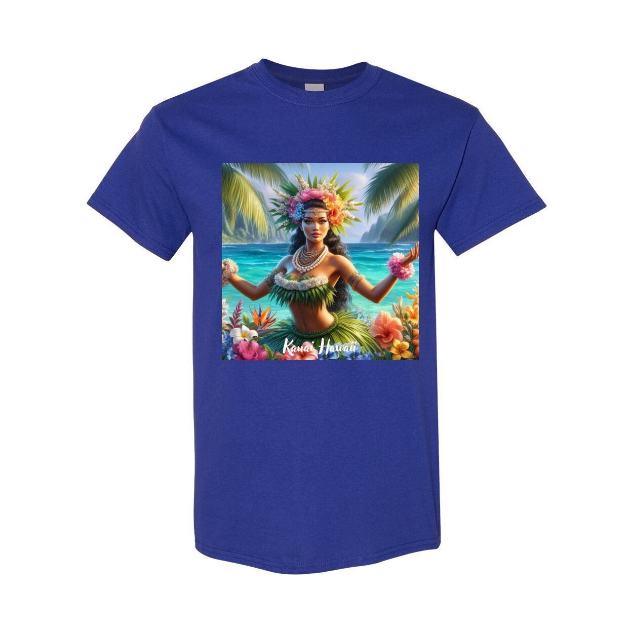 Beautiful Polynesian Woman in full garb by a small Ocean Bay in a Tropical Setting.