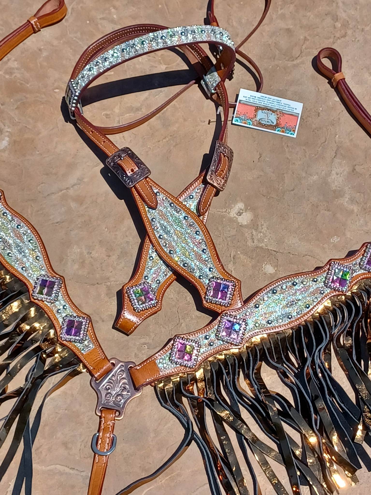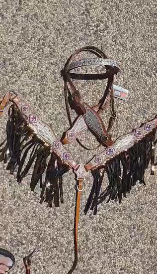 Cassidy, Diamond Sting Ray Horse Headstall and Breast Collar Set Fringe