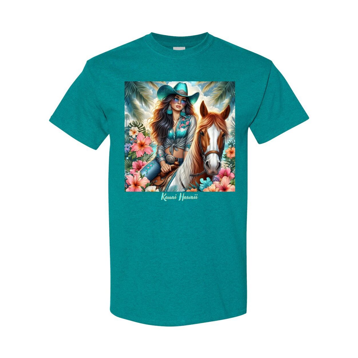 Cowgirl Tropics! Our Gorgeous Island Cowgirl on Our Amazingly Comfortable Uni Sex Style T Shirts