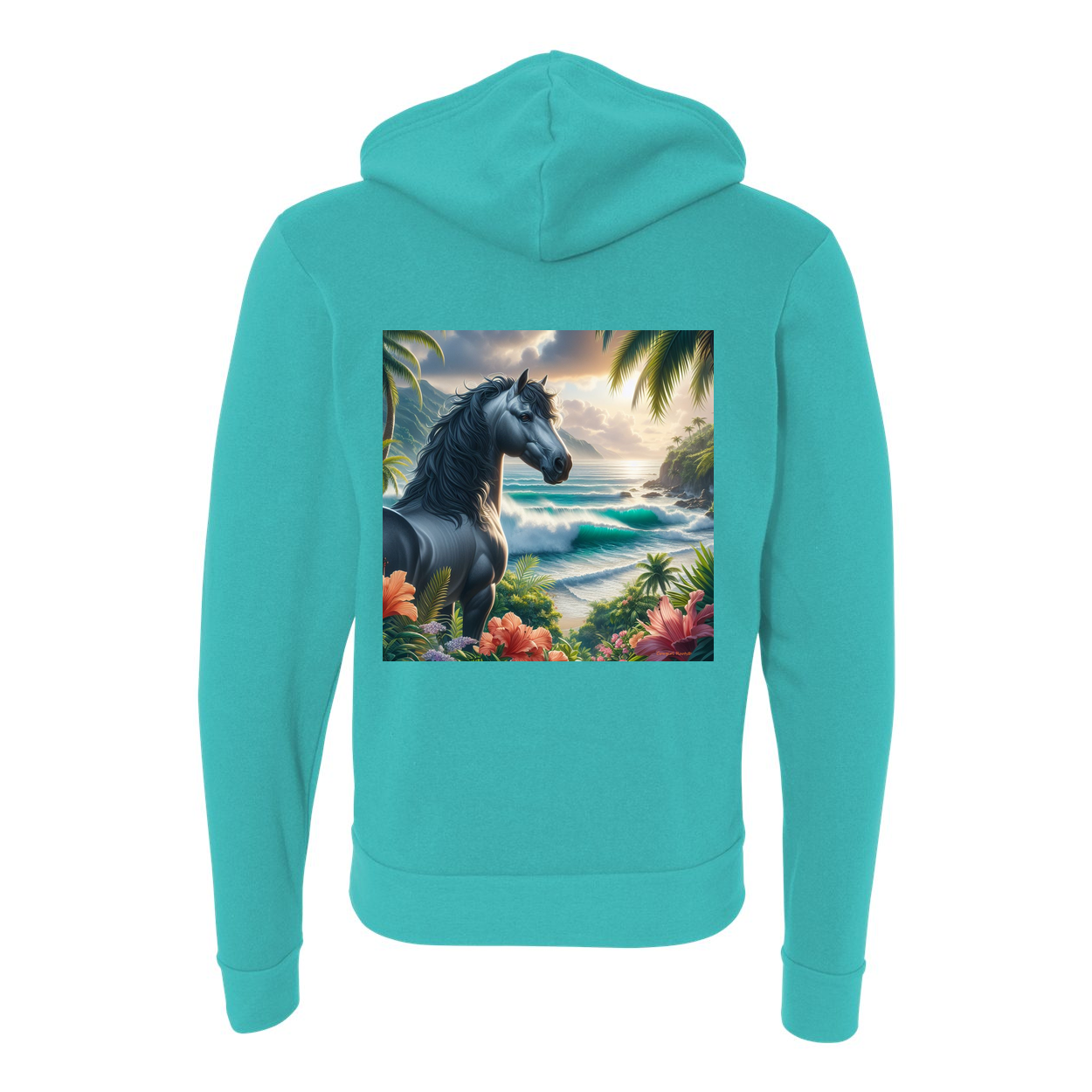 Tropical Grey Stallion Zip-Up Front Pocket Hooded Sweatshirts
