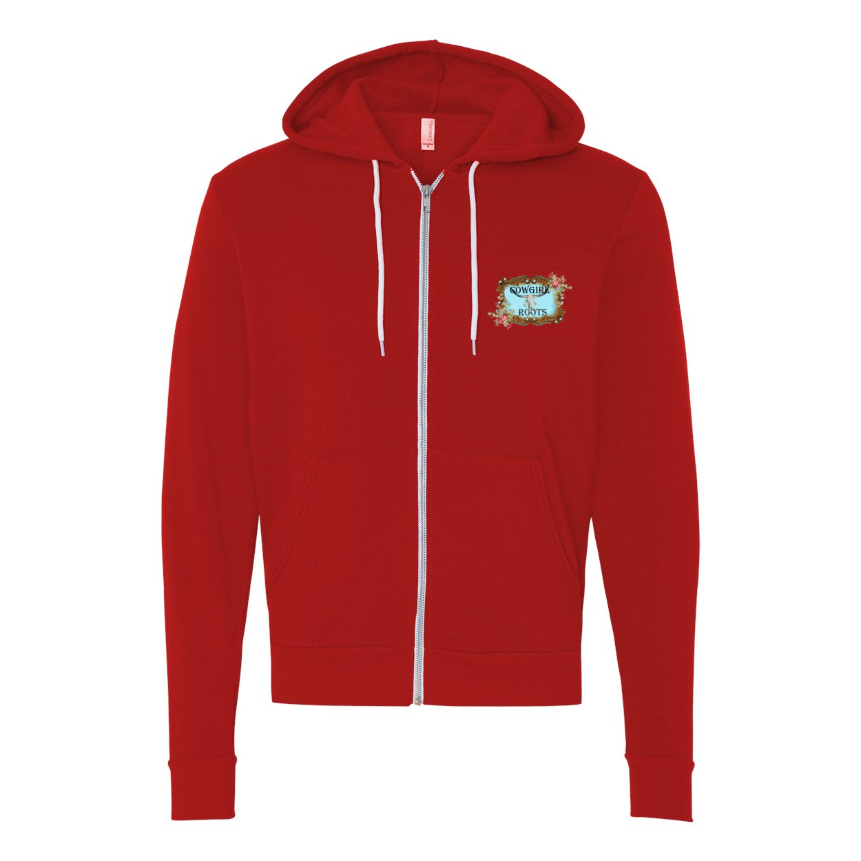 6.5 oz., 52/48 airlume combed and ring spun cotton/polyester Athletic Heather is 90/10 airlume combed and ring spun cotton/polyester White draw cord and zipper tape Full front metal zipper Split front pouch pocket Side seams, retail fit Unisex sizing Ribbed cuffs and waist band Tearaway label