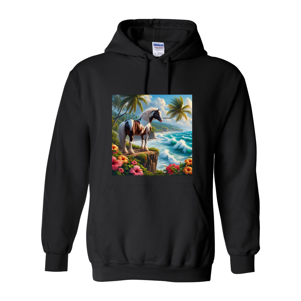 Tropical Red and White Paint Horse on One Our Amazingly Comfortable Hoodies